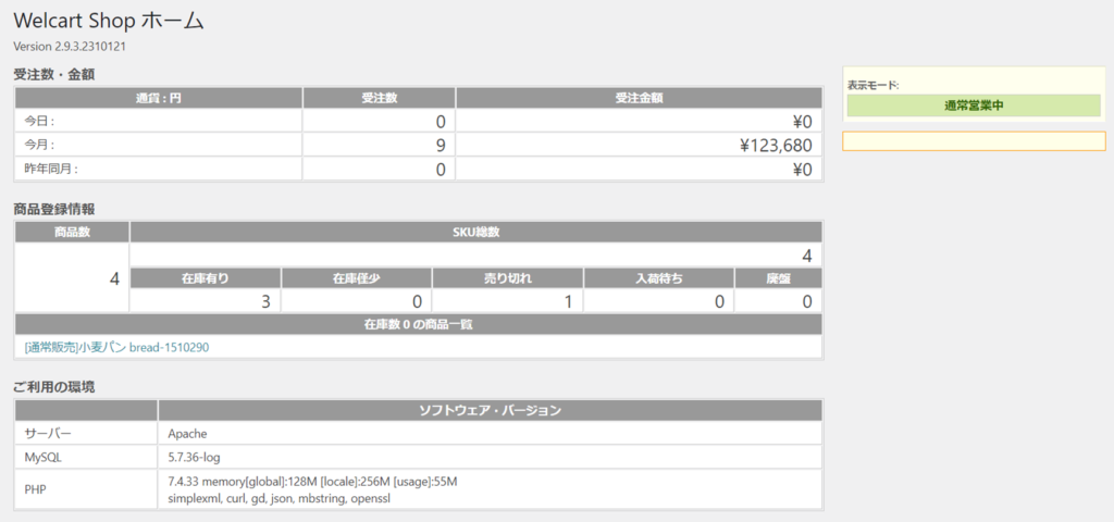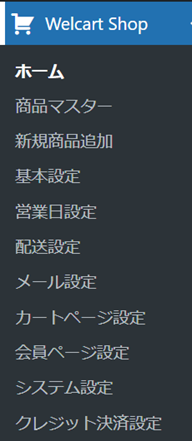 プラグインで「Welcart e-Commerce」を読み込みます。