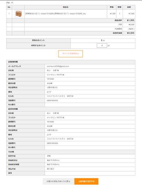 注文画面より商品を注文します。