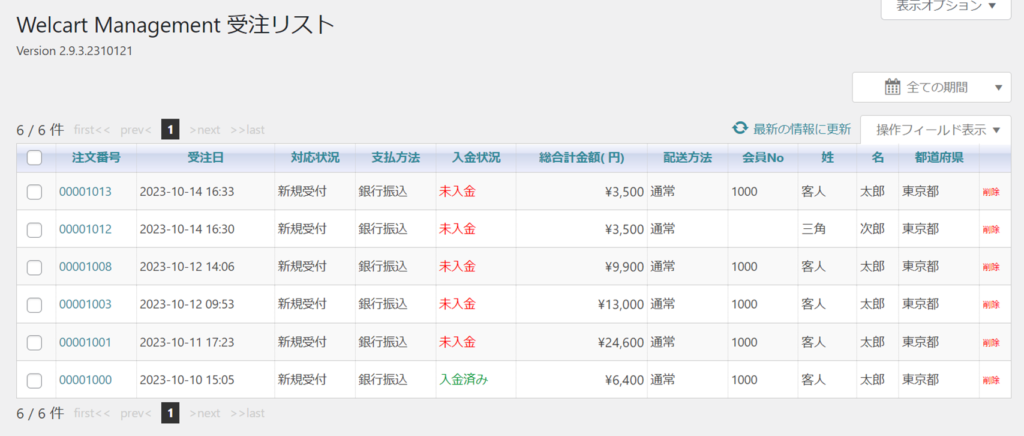 受注リストで注文状況を確認します。