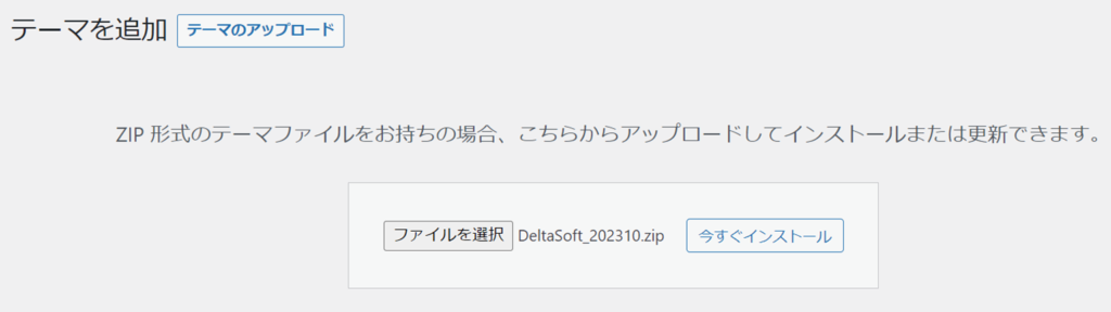 新規追加→テーマのアップロード→今すぐインストール