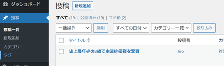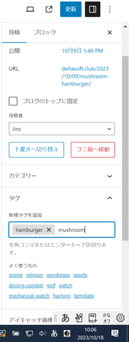 SEO対策としてタグ(スラッグ)を設定しましょう。タグは英語で入力しましょう。