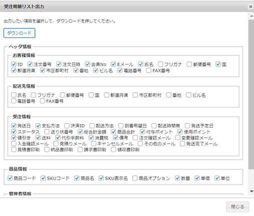 welcartのcsvファイルを出力します。