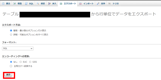 (2)データベースから「usces_skus」テーブルをエクスポート