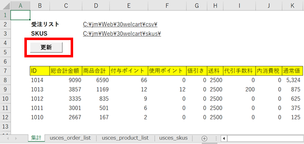 Welcartの受注リストを自作Excelツールで集計