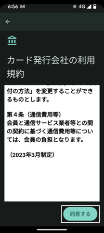 利用規約の文章を最後までスクロールしてから「同意する」をクリックします。