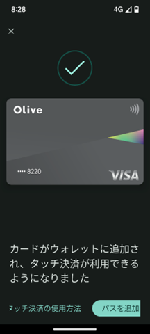 スマホのタッチ決済で街頭のクレジットカードが設定されました。