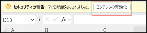 ブロックされたExcelファイルを再度開き「コンテンツの有効化」をクリックするとマクロが実行できるようになります。